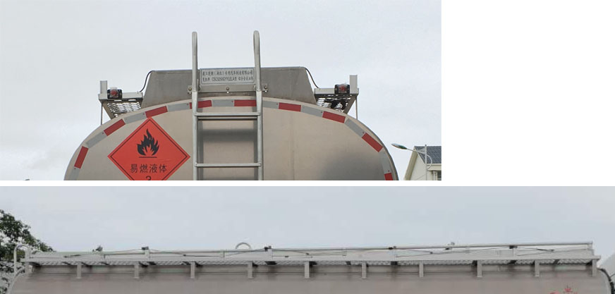 配置 | 1、該車適用于危險品運輸,運送危險貨物車輛類型為:FL型,類項號:3。罐體有效容積23.3立方米,罐體外形尺寸(mm):6900×2450×1720。僅選用4600+1350mm軸距底盤。2、側防護材料為鋁合金,螺栓連接;后防護材料為Q235,螺栓連接,截面尺寸80×140mm,下邊緣離地高500mm。3、選裝駕駛室前面罩,選裝AEBS攝像頭和雷達面罩。僅選用排氣管前置、限速裝置(限速80km/h)、前輪盤式制動及子午線輪胎的底盤,轉向輪安裝輪胎爆胎應急防護裝置,后軸采用空氣懸架。安裝帶有衛星定位功能的行駛記錄儀。EBS型號/生產廠家:EBS5/東科克諾爾商用車制動系統(十堰)有限公司。發動機/油耗值(L/100km)對應關系為:DDi75E300-60/37.3。4、選裝ETC。罐體上部選裝上走道。 | ||