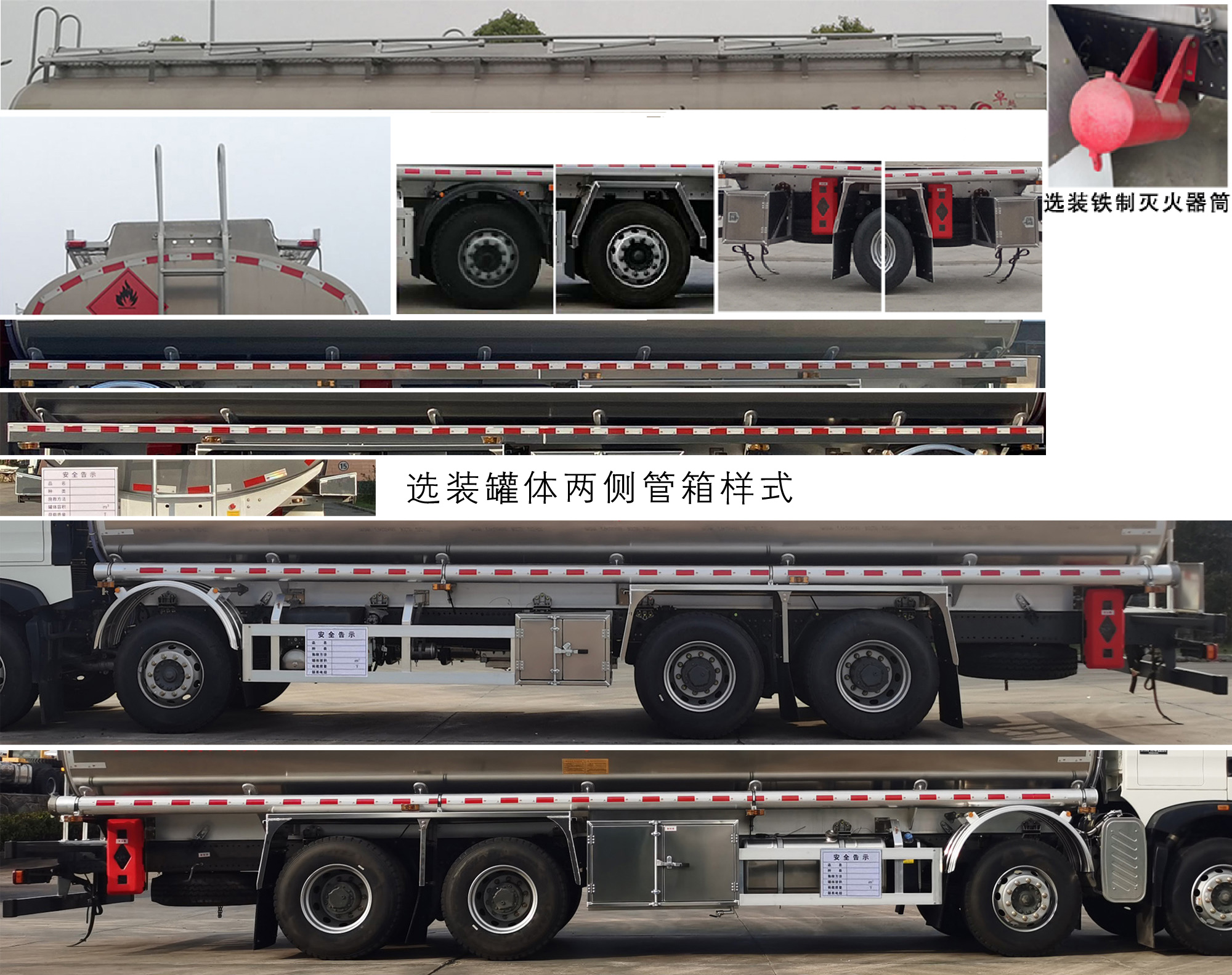 其它: | 該車適用于危險品運輸,運送危險貨物車輛類型為:FL型.準運介質最大密度:830千克/立方米,罐體總容量24.8立方米,罐體有效容積24.1立方米,罐體外形尺寸(長×寬×高)(mm):9200×2200×1500.僅采用軸距(mm):1800+4575+1400,1950+4600+1400的底盤改裝.側防護材料為鋁合金,螺栓連接;后防護材料為Q235,螺栓連接,截面尺寸(mm)80×140,下邊緣離地高500mm.僅選用排氣管前置、限速裝置(限速80km/h)、前輪盤式制動及子午線輪胎的底盤,轉向輪安裝輪胎爆胎應急防護裝置,后軸采用空氣懸架,安裝帶有衛星定位功能的行駛記錄儀.EBS型號/生產廠家:EBS3/威伯科(上海)管理有限公司.發動機/油耗申報值(L/100km)對應關系為:MC11.43-61/36.70,MC11.44-60/37.12,MC07H.33-60/37.44,MC09.35B-60/38.01,MC09.35-60/38.30,MC07.31-60/38.13,MC07.34-60/38.13,WP10H400E62/36.40,MC07H.35-60/37.44,MC09.38-60/38.30,MC07.33-60/38.13,WP9H350E62/36.39,MC11.40-60/37.12,MC11.40-61/36.70,WP8.350E61/35.68,MC11.46-61/36.70,MC11H.46-61/38.01,WP10.5H430E62/37.99,WP12.430E62/37.42,WP12.490E62/37.42,WP12.460E62/37.42.該車可選裝直接供電式ETC車載裝置.隨底盤選裝駕駛室,選裝鋁合金輪轂,選裝尿素箱、電瓶箱、儲氣筒、后處理安裝位置。罐體上部選裝上走道,第二軸選裝弧形膠制擋泥板或方形擋泥板,選裝左右側后部工具箱及左側工具箱樣式,選裝鐵制滅火器筒,選裝罐體兩側管箱樣式. |