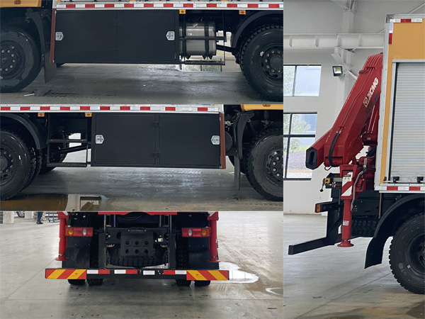 其它: | 1、該車主要用于搶險(xiǎn)救災(zāi)、賽事活動(dòng)等的應(yīng)急照明支援;主要專用裝置:照明系統(tǒng),發(fā)電機(jī)組,吊機(jī)等;廂體頂部密閉,不可開啟。2、側(cè)防護(hù)為裙邊結(jié)構(gòu),材料Q235;后防護(hù)材料采用Q235,螺栓連接,截面尺寸125×60mm,下邊緣離地高485mm。3、ABS型號(hào)/生產(chǎn)廠家:3631010-C2000/東科克諾爾商用車制動(dòng)系統(tǒng)(十堰)有限公司。 | ||