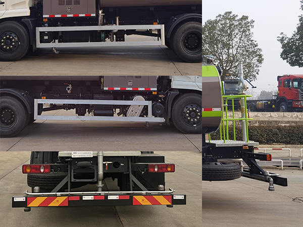 其它: | 該車為墻壁,隧道壁,隔音墻等清洗作業車.專用裝置為清洗滾刷系統和罐體.側防護材質鋁合金,連接方式為螺栓連接;后防護材料材質:Q235,連接方式為焊接連接.后防護截面尺寸(mm):60×140,離地高430mm,罐體外形尺寸(長×寬×高)(mm):4000×2300×1400,罐體總容量8.93立方米,罐體有效容積8.5立方米.該車僅選用底盤4700mm軸距改裝,車輛前伸1170mm.ABS型號/生產廠家:3631010-C2000/東科克諾爾商用車制動系統(十堰)有限公司,ABS 8/東科克諾爾商用車制動系統(十堰)有限公司, 4460046450/威伯科汽車控制系統(中國)有限公司,J ABS/焦作博瑞克控制技術有限公司.隨底盤選裝限速裝置,限速89km/h. | ||