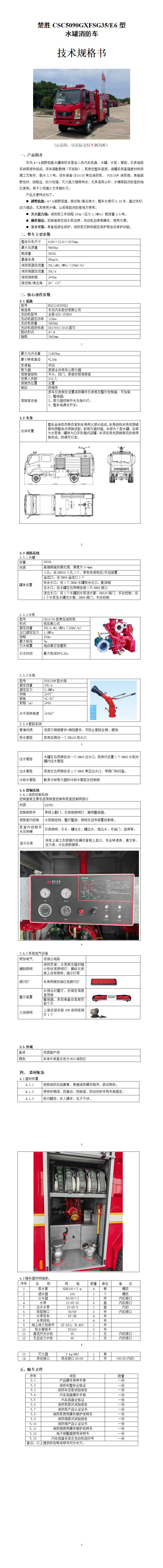 楚勝CSC5090GXFSG35/E6型 水罐消防車